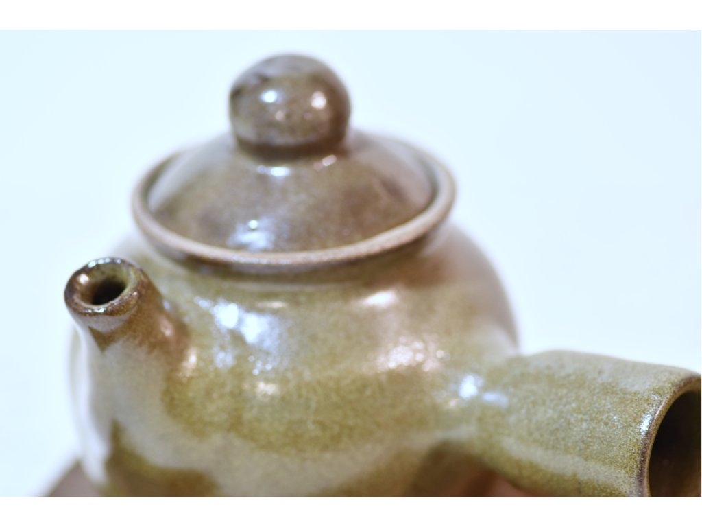 Čajník na japosnký štýl yokode kyusu s rúčkou smerujúcou do strany.