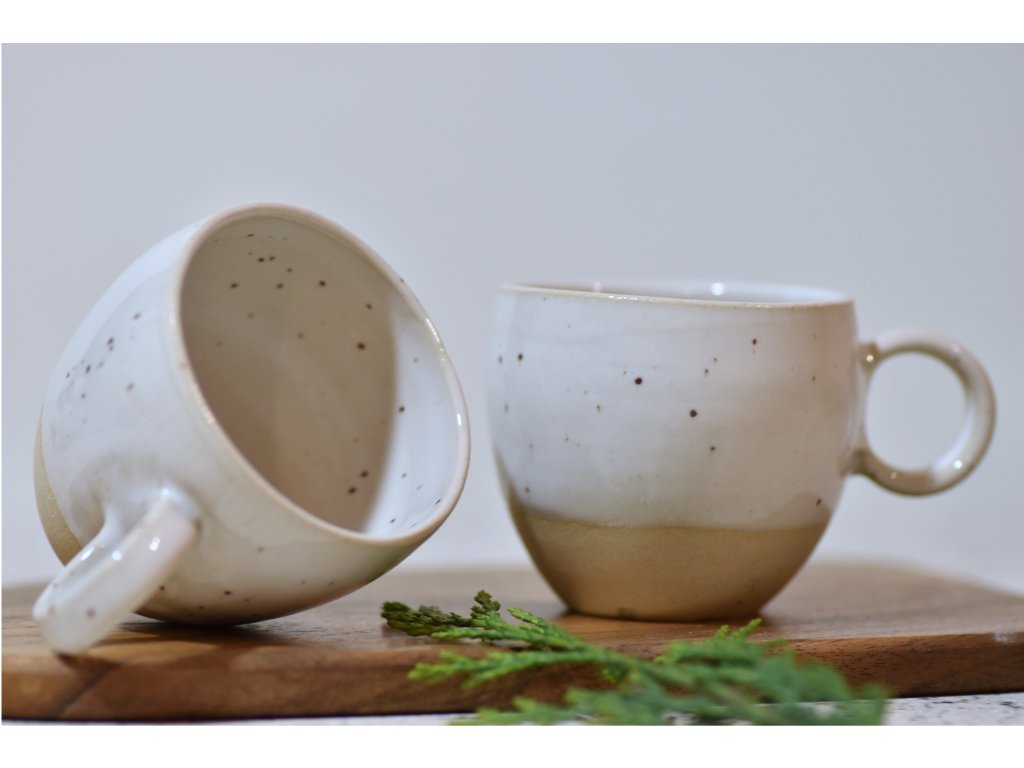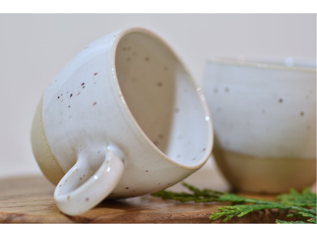 Šálky sú ručne točené na hrnčiarskom kruhu v našej tvorivej dielni v bratislavskej Dúbravke.