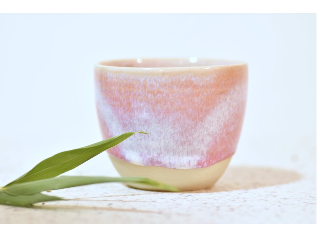 Kameninový cappuccino kálišok, doplnený glazúrou v jemný rúžových tónoch.