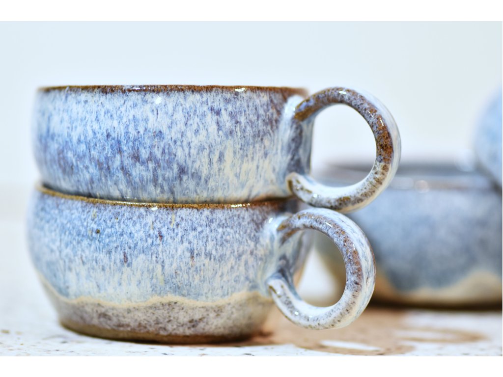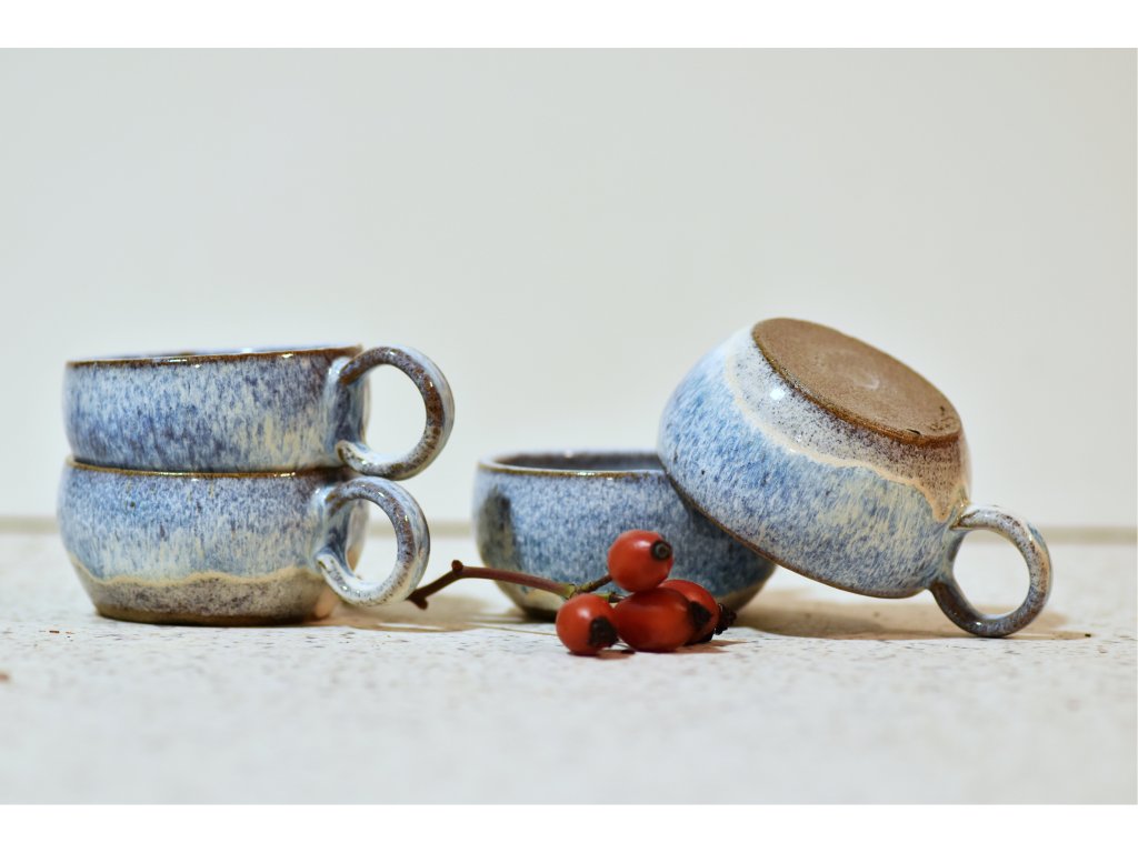Šálky sú ručne točené na hrnčiarskom kruhu v našej tvorivej dielni v bratislavskej Dúbravke.