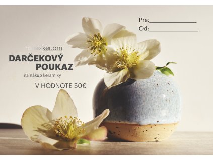 Urobte radosť darčekovou poukážkou v hodnote 50€ na nákup keramiky priamo v našej dielni v bratislavskej Dúbravke, kde si obdarovaný môže vybrať keramiku podľa vlastného vkusu....