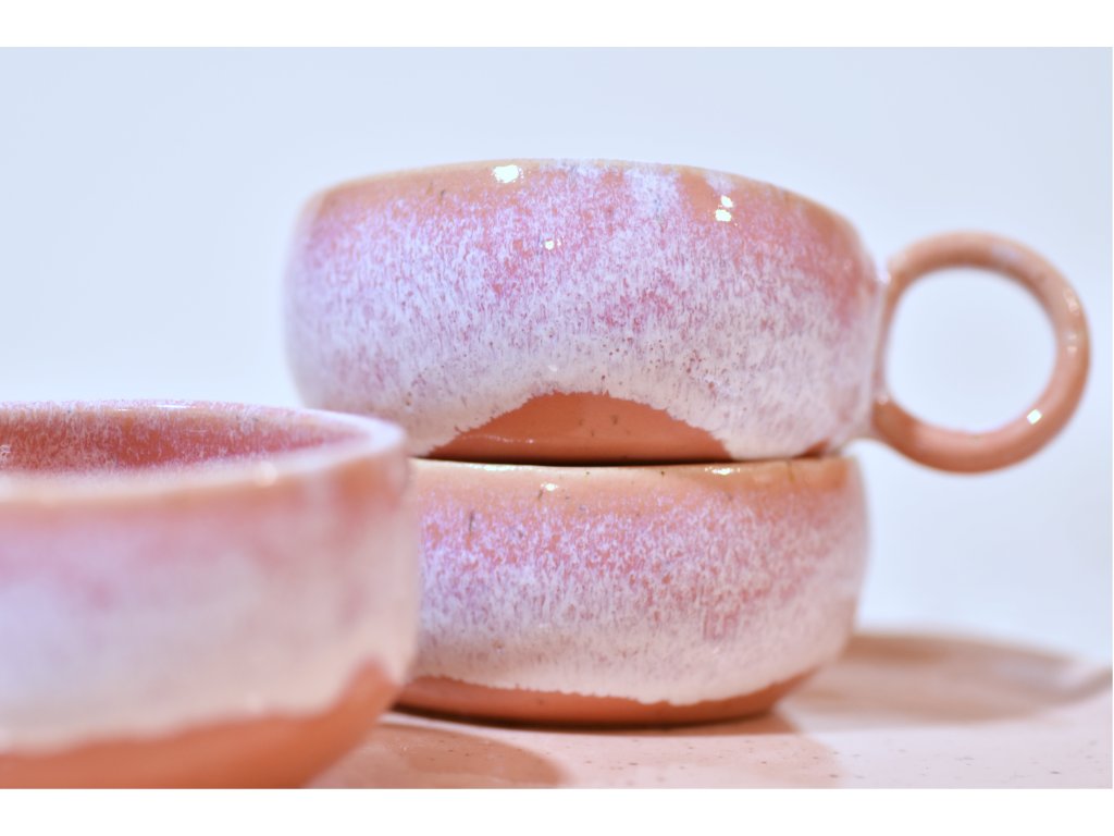 Táto nízka, ristretto šálka je vyrobená z kvalitnej, bielej kameniny, ktorá jej dodáva prírodný charakter. Doplnená je navyše rúžovou glazúrou a je dvakrát vypálená v keramickej peci. Vychutnajte si rannú kávu alebo darujte šálku ako krásny a praktický darček, ktorý poteší.