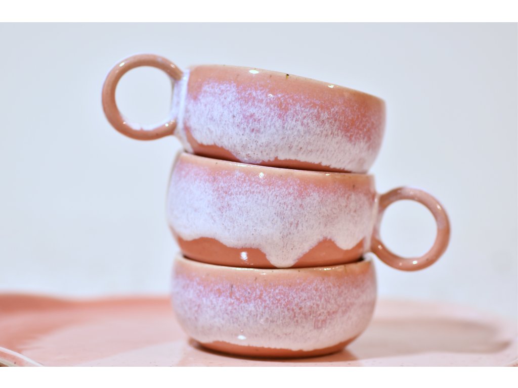 Nízka, ristretto šálka z kvalitnej, bielej kameniny, doplnená Rúžovou glazúrou.
