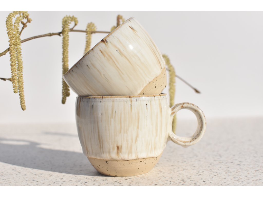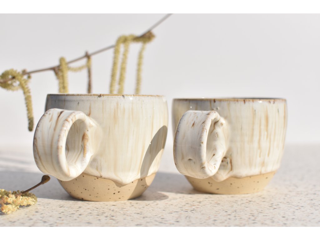Šálky sú ručne točené na hrnčiarskom kruhu v našej tvorivej dielni v bratislavskej Dúbravke.