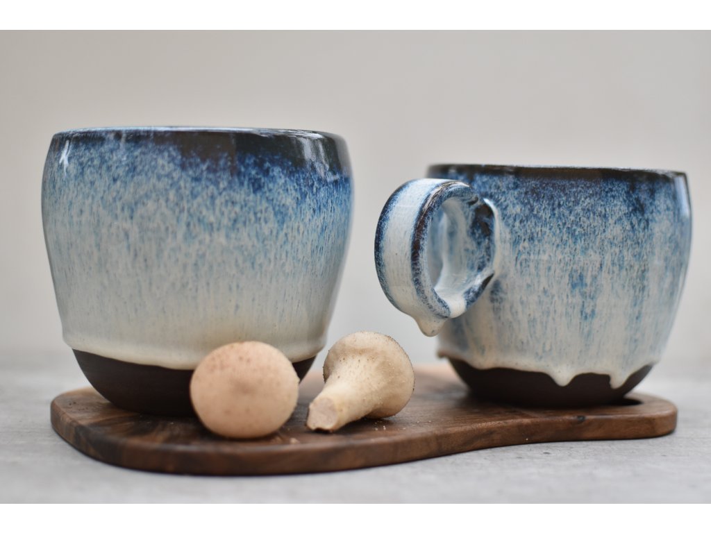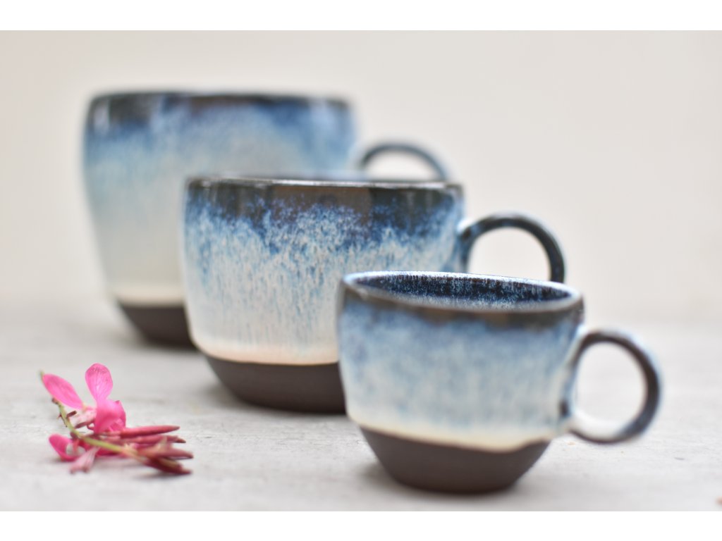 Šálky sú ručne točené na hrnčiarskom kruhu v našej tvorivej dielni v bratislavskej Dúbravke.