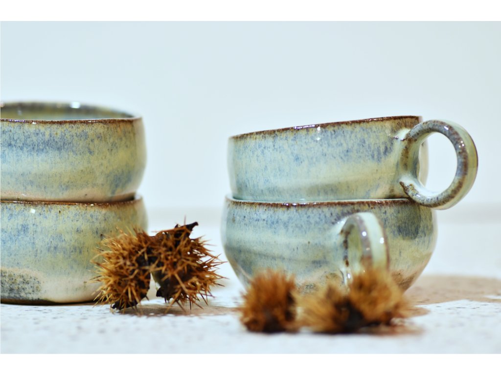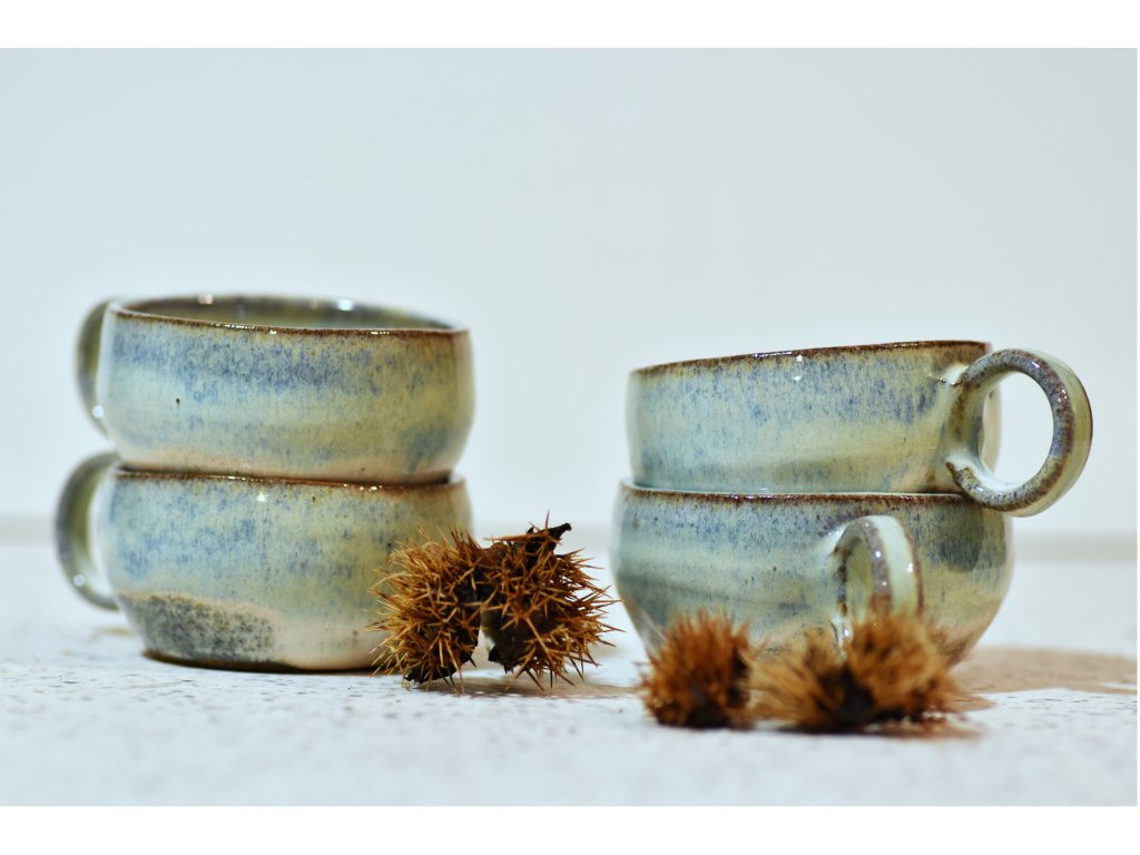 Šálky sú ručne točené na hrnčiarskom kruhu v našej tvorivej dielni v bratislavskej Dúbravke.